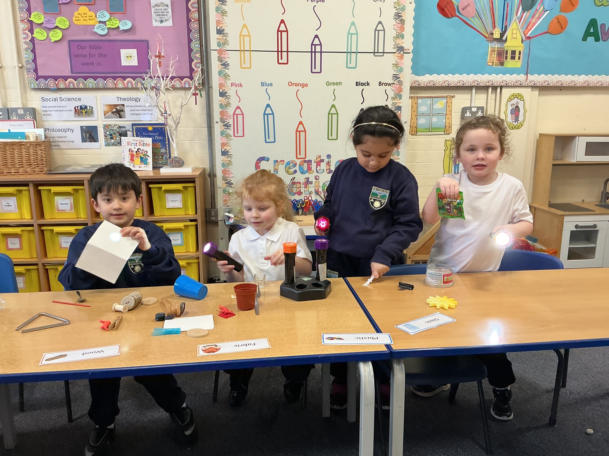 In Science today, we’ve been busy exploring and experimenting! We built stable structures using LEGO, Stickle Bricks and marshmallows to discover which materials work best. We also practiced our threading skills and investigated different materials to see whether they are opaque, transparent or translucent using torches. Lots of hands-on learning and fun discoveries all around! ✨